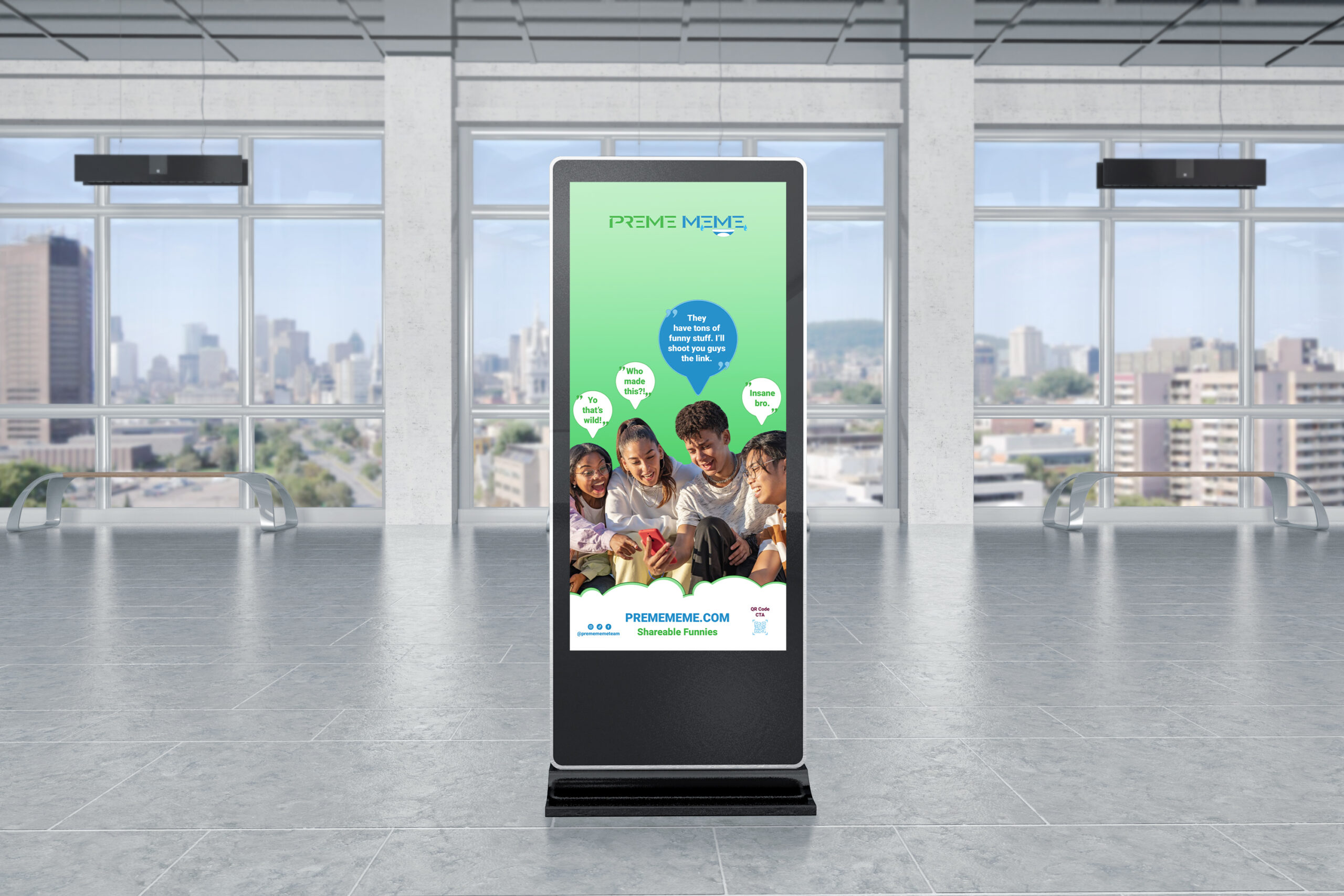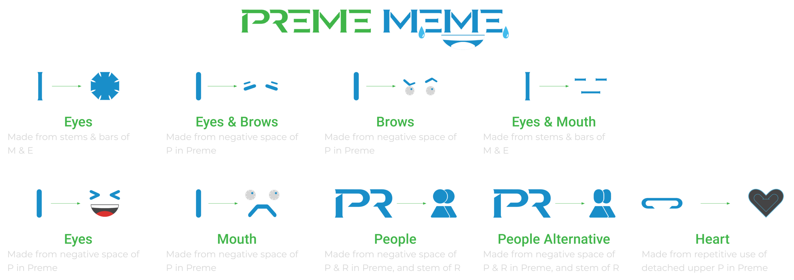 Custom emoticons and icons displayed are original artwork constructed of elements taken from the primary Preme Meme logo. The emoticons are based on standard Unicode emojis utilized on mobile devices. This helps to make the emoticons easily recognizable.