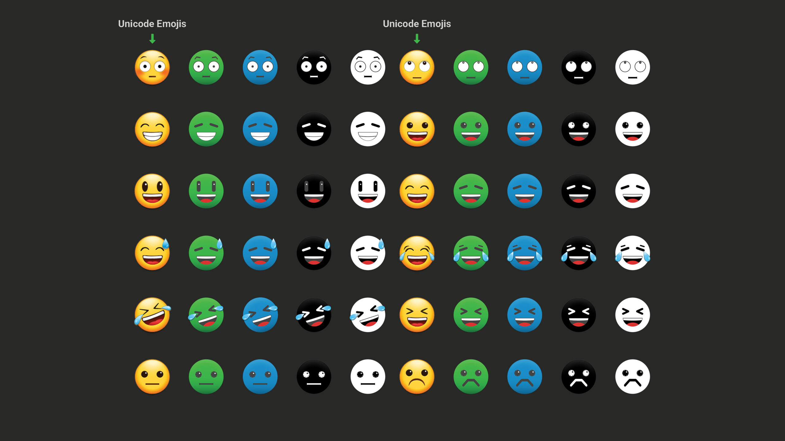 Yellow versions displayed are Unicode versions for reference. The icons are designed to represent frequent everyday ideas and primary business needs. Both emoticon and icon libraries are initial collections and will continue to expand with business needs.